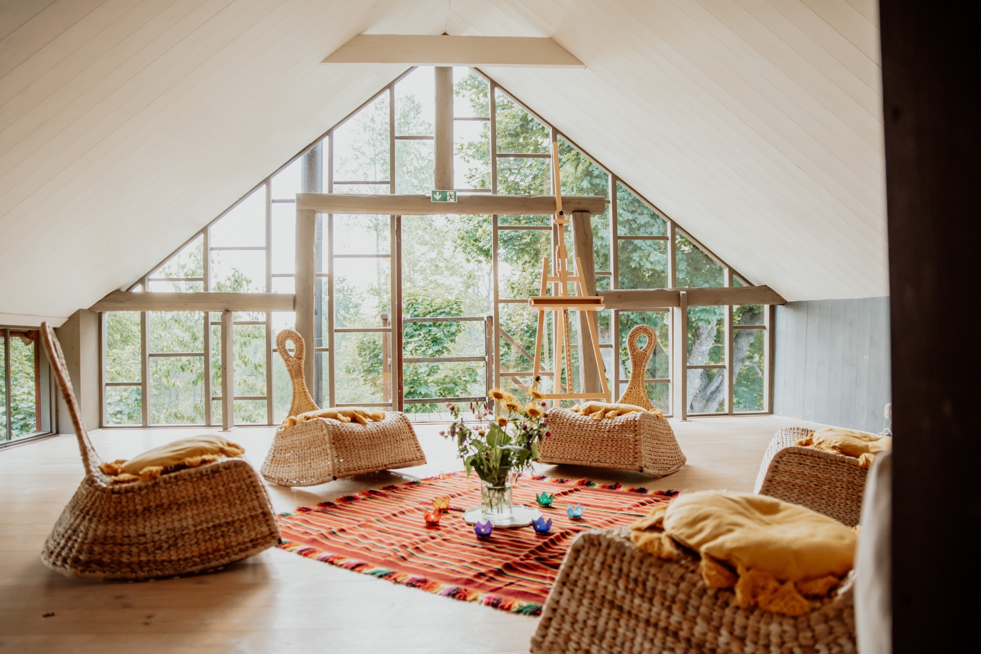 Innan du kliver in i den kreativa målar-bubblan finns möjlighet till skogsbad på lördagmorgon och yinyoga på söndagmorgon. Dessa håller yoga- och skogsbadsinstruktören och tillika den som driver Tivedengården, Jessica Sunnebo, i